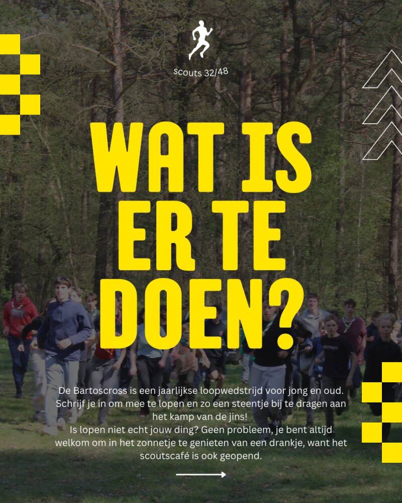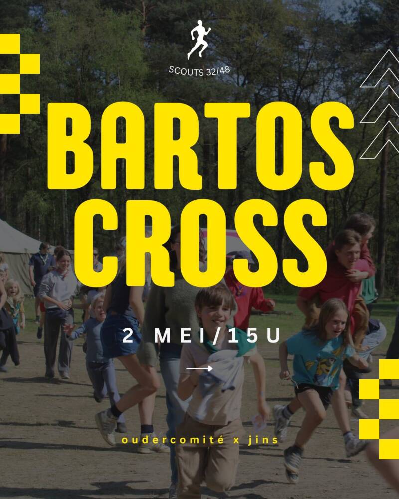 Op zaterdag 2 mei vanaf 15u is het tijd voor de allerleukste loopwedstrijd van het jaar: de BARTOSCROSS! Er zijn 4 afstanden, geschikt voor alle leeftijden. Schrijf je en in loop mee om ook zo een steentje bij te dragen aan het buitenlandskamp van onze jins! Zelf geen zin om te lopen? Kom af voor mentale support, een lekkere burger te eten en een drankje te drinken.